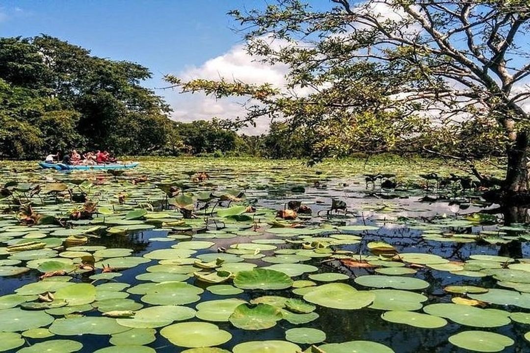 Nel pomeriggio, esperienza autentica nel villaggio di Hiriwadunna: giro in carro trainato da buoi, attraversamento in canoa di un lago di fiori di loto e pranzo tradizionale in una casa locale.